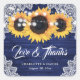 Navy Blue Wood Lace Sunflower Wedding Thank You Square Sticker