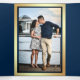Navy Blue Wood Nautical Gold Anchor Lights Wedding Tri-Fold Invitation