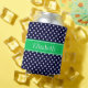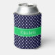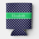 Navy Blue Wt Polka Dot Emerald Green Name Monogram Can Cooler