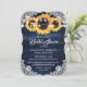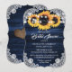 Navy Blue Yellow Sunflower Wood Lace Bridal Shower Invitation