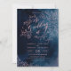 This elegant modern calligraphy wedding invitation with rustic floral design in soft blush pink colour dark navy blue watercolor background, great for modern rustic wedding, or spring wedding in evening.