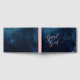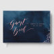 This elegant modern calligraphy wedding guest book with rustic floral design in soft blush pink colour on dark navy blue watercolor background, great for modern rustic wedding, spring wedding in evening.
