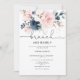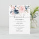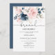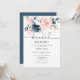 Navy blush floral brunch and bubbly bridal shower invitation