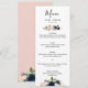 Navy Blush Floral Golden Leaves Wedding Menu