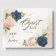 navy blush flowers green leaves guest book