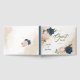 Beautiful wedding guest book featuring navy and blush pink flowers and green leaves.