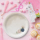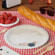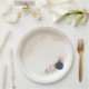 Beautiful wedding paper plate featuring navy and blush pink flowers and green leaves.