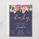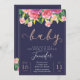 Navy Blush Magenta Floral Baby Shower Invitation
