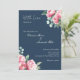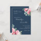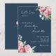 This blush floral navy peony wedding invitation features a rich deep navy blue background, paired with delicate blush pink peony blooms and lush eucalyptus greenery. The design blends timeless elegant calligraphy script with modern typography, framed by subtle botanical accents to set a sophisticated, romantic tone. It’s perfect for classic, French country, or garden-style weddings, offering a luxurious yet effortless aesthetic. Mix and match with other coordinating pieces in the collection for a cohesive look, and explore additional colour options in white and blush to suit your event palette.
