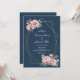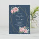 Navy Blush Peony Gold Frame Wedding Invitation