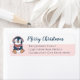 Cute Baby Penguin Merry Christmas Navy Script Custom Text on Baby Pink and White return address label.