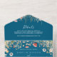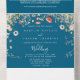 This navy boho wildflower wedding all in one invitation is perfect for a rustic wedding. The design features pink, purple, blush, yellow, dusty blue, red, burgundy meadow wild flowers assembled in a seamless and delightful floral pattern, evoking natural beauty.