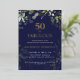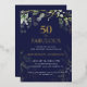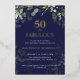 Navy Blue Botanical Fifty and Fabulous Script Birthday Party Invitation.