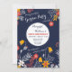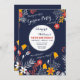A navy-blue background with bold red, yellow and white flowers and foliage create a stunning invitation for a garden celebration. (<a href='http://www.freepik.com/free-vector/bachelorette-invitation-with-beautiful-floral-decoration_1070925.htm'>Designed by Freepik</a>). <br/><br/>The card is easy to customise with your wording, font, font colour and choice of six paper types.<br/><br/>Not exactly what you're looking for? All our products can be custom designed to meet your needs at no extra charge.<br/><br/>Simply contact us at heartfelthelper@gmail.com<br/><br/>Coordinating products available: