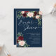 Boho Navy Burgundy and Blush Floral Bridal Shower Invitation. This invitation is chraacterised by boho burgundy and blush roses and flowers with two modern high-class fonts that shape the trends of the present and future festive events.