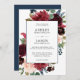 Navy, Burgundy and Blush Watercolor Floral Wedding Invitation