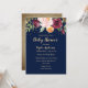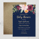 Navy Burgundy Floral Glitter Baby Shower Invitation