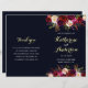 Bohemian style wedding program featuring watercolor illustration of burgundy, red and pink peonies and roses with feathers accent on navy blue background.. NOTE: You will need to fold them in half when they arrive.