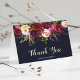 CHANGEABLE BACKGROUND COLOR. Bohemian style Wedding Thank You Card featuring watercolor illustration of burgundy, marsala, red and pink peonies and roses with feathers accent on navy blue background. This is perfect for fall/autumn/winter, floral and bohemian style events. Matching items are also available.