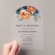 Navy Burnt Orange Florals Wedding Evening Party Acrylic Invitations