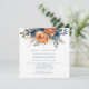 Navy Burnt Orange Florals Wedding Evening Party Invitation