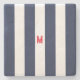 Navy Cabana Stripe & Personalised Red Monogram Stone Coaster