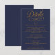This elegant wedding details card features romantic navy calligraphy on a clean, classic layout. Perfect for formal, nautical, or evening weddings, it adds a refined touch to your invitation suite.