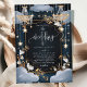 Navy Chic Golden Chandelier : An exquisite and luxurious wedding invitation design, featuring a floral motifs, intricately intertwined with gold accents, gracefully dance across the card. These floral elements mingle with the sparkling lights, inviting guests to a majestic celebration of love and union. The invitation promises an unforgettable experience, where guests will be immersed in the opulence of a regal affair, surrounded by the splendour of a lavish and enchanting wedding.