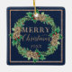 Navy Christmas Wreath Proposal Holly Leaf Foliage Ceramic Ornament