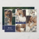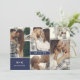 Double sided save the date card with a clean collage of five photos on one side with your initials and wedding date, and a larger photo on the other with more information about your wedding, with white fonts on navy blue. Modern save the date card with a minimalist design, elegant fonts, and a photo collage. White save the date card with a clean photo design, your initials, and wedding date in black fonts. Send out a practical yet elegant and romantic save the date photo card to your guests so they can easily see when you're getting married with this photo template card in navy blue and white with classic elegant fonts. No frills save the date in navy blue with a clean modern design where you can show off all the photos of your save the date photo shoot in a collage of five photos on one side, and another photo on the other.