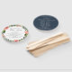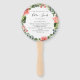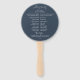 Beautiful watercolor floral garden wreath in shades of navy blue, coral and green, back features solid muted navy blue background, wedding program fans. Personalise text, customise font style, colour and size.