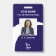 A navy corporate employee photo ID security badge that can be easily customised with your company name and logo as well as your employee's name, photo, job title and ID number, the badge has a navy background with a white swoop across the middle which symbolise the upward trajectory of your business. On the back is room for your company information. A professional badge for office or retail use. No minimum order.