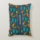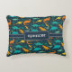 Personalise this cute dinosaur themed accent pillow with your child’s name in white lettering for a cool custom touch! Created especially for dino-loving kids, this colourful design features yellow, orange, and mint green dinosaur illustrations on a navy blue background.