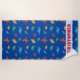 Navy Dinosaurs Pattern Kids Summer Beach Towel. This is a super cool towel inspired by dinosaurs. The template is ready to use. Click on "customise this template" to add your child's name. Customise yours now!
