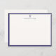 Navy Double Border Monogram Off-White Note Card
