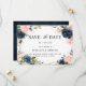 Dark navy blue floral geometric wedding Save the Date featuring elegant bouquet of navy blue, royal blue , white , blush rose and sage green eucalyptus leaves and elegant glitter geometric neutral frame. Please contact me for any help in customisation or if you need any other product with this design.
