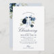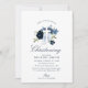 navy & dusty blue floral christening invitation