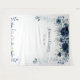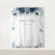 A navy and dusty blue floral watercolor floral backdrop for wedding photos, with your names and numeric date along the top.