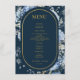 Navy Dusty Blue Floral Spring Bloom Wedding Menu
