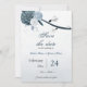 dreamy navy blue camellia and dusty blue flowers and cute white snowdrop flowers botanical save the date invitation