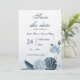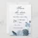 Romantic navy blue and dusty blue flowers botanical save the date invitation