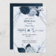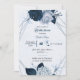 Elegant navy blue and dusty blue flowers and some beautiful leaves on a geometric frame bridal shower invitation