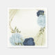 Beautiful wedding paper napkin featuring navy and dusty blue flowers and green leaves
