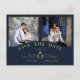 Navy Elegant Pink 2 Photos Sophisticated Wedding Save the date.