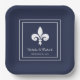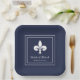 Elegant and simple Wedding paper plates featuring a fleur de lis against a Navy background. This design is a unique choice for a modern wedding. Easy to customise with your wedding details. Click "Customise It" to find more personalisation options.