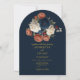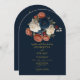 Navy Floral Botanical All-in-One arched Wedding Invitation