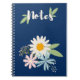 This charming notebook cover features an elegant navy blue background adorned with a vibrant floral arrangement, including daisies, pastel pink and blue flowers, and delicate greenery. The modern script "Notes" stands out beautifully, making it perfect for journalling, schoolwork, or creative ideas. This design brings a fresh and calming aesthetic to your everyday writing experience.