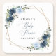 Navy Flowers, Blue Flowers, Greenery, Baby Shower Square Paper Coaster