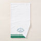 Game Set Match, navy crest, green stripe tennis hand towel. Personalise with the year, tennis club / championship / tournament name and location. The perfect addition to your tennis kit or as a gift for a tennis lover. Designed to match our Game Set Match Tennis Collection.
