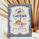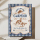 Saddle up for a sweet celebration! This gingham cowboy birthday invite features western flair with a charming twist—easy to edit, download, and print or share digitally.